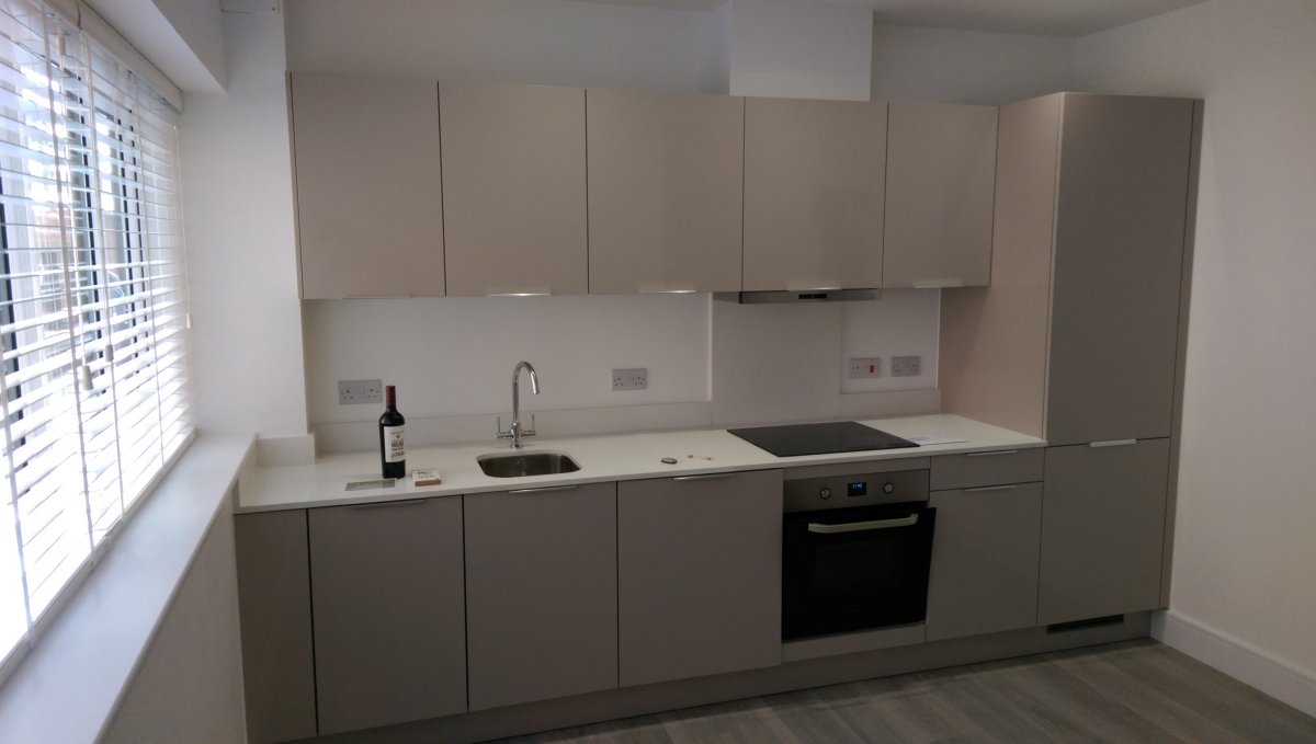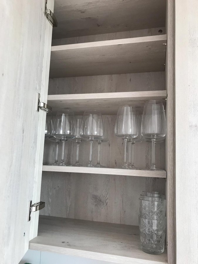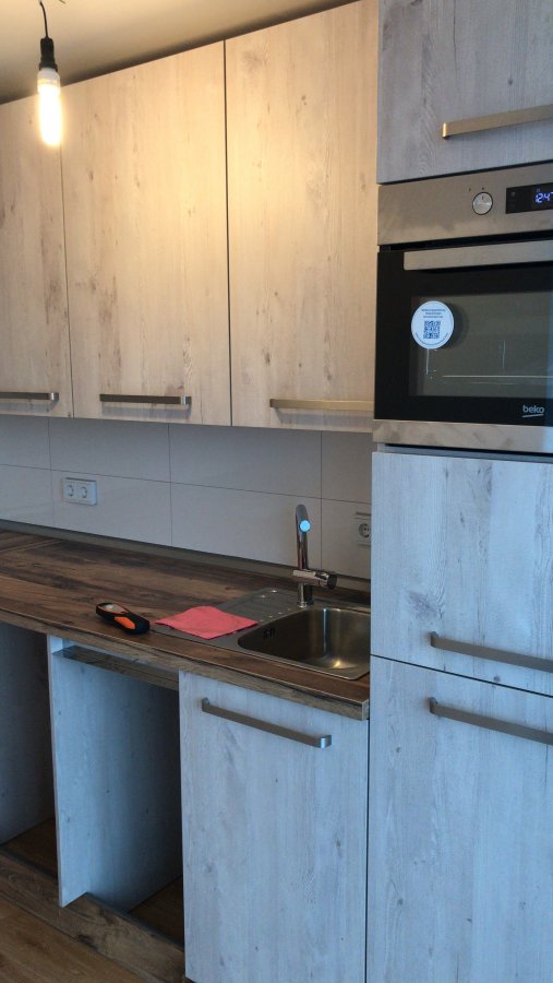 Mit viel Glück konnte ich die Küche an eine Nachmieterin verkaufen, die hat sie nun einbauen lassen und hat mir ein paar Fotos geschickt, die ich euch auch weiterleiten wollte. Leider ist es für Smartphonekameras schwer, den Raum ganz einzufangen, ihr müsst euch das also im Kopf ein bisschen zusammenpuzzeln.
