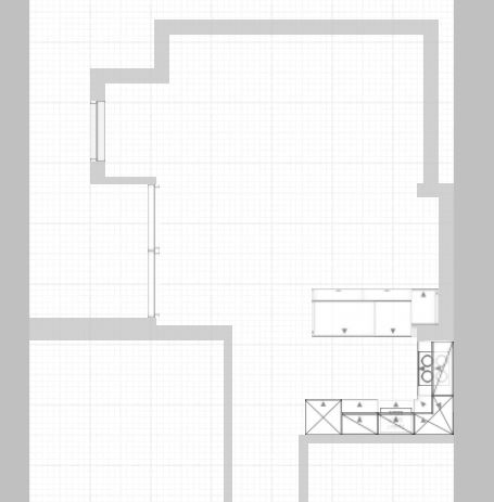 @Bärbel123: Oberhalb des Wandvorsprungs kann die Küche nicht weitergehen wegen der Bodenfliesen. Selbst wenn ich die noch weiter rein ziehen könnten, bliebe das Problem der Wand an sich bestehen - die ist dahinter um einige Zentimeter versetzt, sodass man keine plane Küchenzeile hätte.