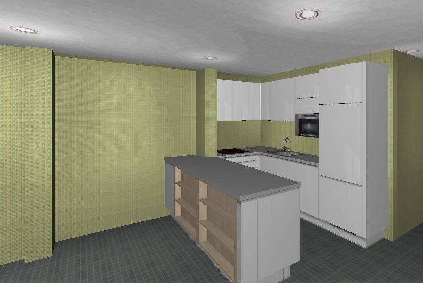 Hallo @Zaphir, wie ich denke, soll die Küche an die Wand zum Bad kommen, oder?