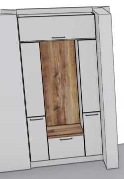 Im Flur ist zusammen mit der Garderobe noch ein Apotheker und ein Besenschrank geplant.