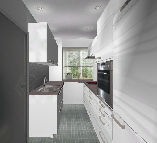 Die Küche die ich bei dem Alno Küchenplaner erstellt habe, hat uns so ein Küchenstudio auch erstellt und entspricht größtenteils auch unserer jetzigen Küche, nur Spüle und Geschirrspüler sind jetzt auf gleicher Höhe wie der Rest der Schränke und wurde jetzt höher geplant. Aktuell ist der Kühlschrank und der Apothekerschank getauscht. Achso die Küche wurde bei der Planung komplett mit weißer Nischenverkleidung ausgestattet außer beim Herd da wurde die Farbe der Arbeitsplatte hochgezogen, habe ich beim Küchenplaner irgendwie nicht hinbekommen, aber ich dachte, das ist für die Grundsätzliche Planung jetzt auch nicht ganz so wichtig