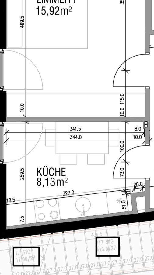 Wir sind gerade dabei eine Wohnung zu kaufen und möchten diese an Studenten / Wohngemeinschaft vermieten. Der Grundriss zeigt 2 Schlafzimmer, 1 Bad, 1 Abstellraum, Gang und eine 8 qm große Küche. Der Vorschlag des Architekten für die Küche ist im Plan eingezeichnet und ich hänge mal zwei Ideen einer Küchenzeile an, wie wir sie uns aktuell vorstellen. Wichtig ist, dass ein Tisch für 4 Personen (dachten an 120x80) Platz hat - auch wenn nur 2 Personen dort wohnen werden, braucht man doch meist mehr Platz für Gäste. und da es auch kein Wohnzimmer gibt, wird die Küche DER Treffpunkt werden.
