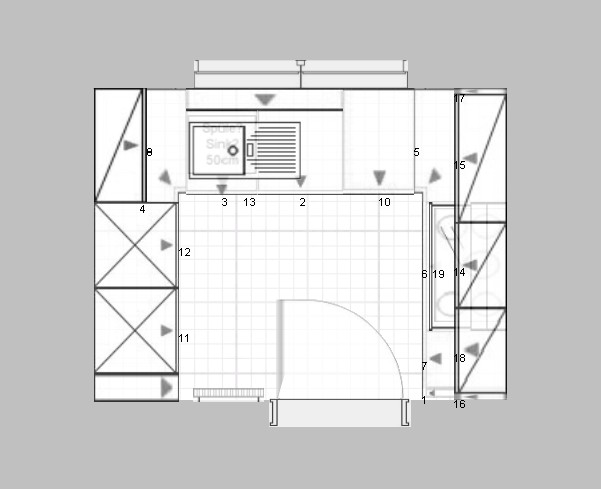 Nun zu meiner Planung. Leider lässt deine Küche nicht viel Spielraum. Aber sei es drum.