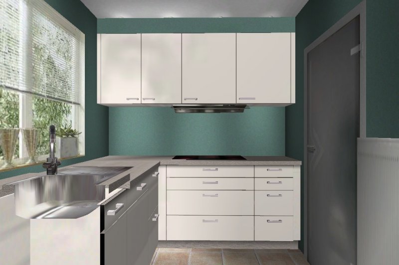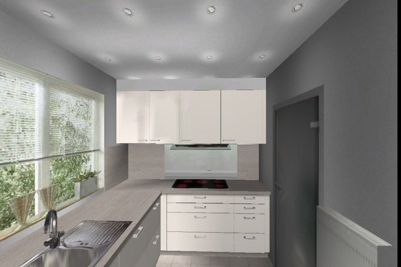 Ja, das Oberschrankband sieht etwas neubacken aus, aber ich ging davon aus, dass ihr Oberschränke möchtet. Ich habe euch einen Ullaschrank geplant, damit ihr auf die OS verzichten könnt und nur eine DA installiert. Auf der anderen Seite ist die Küche so klein, das hier nie Besuch herum stehen wird und eine Küche soll vor allem ein Arbeitsraum sein.
