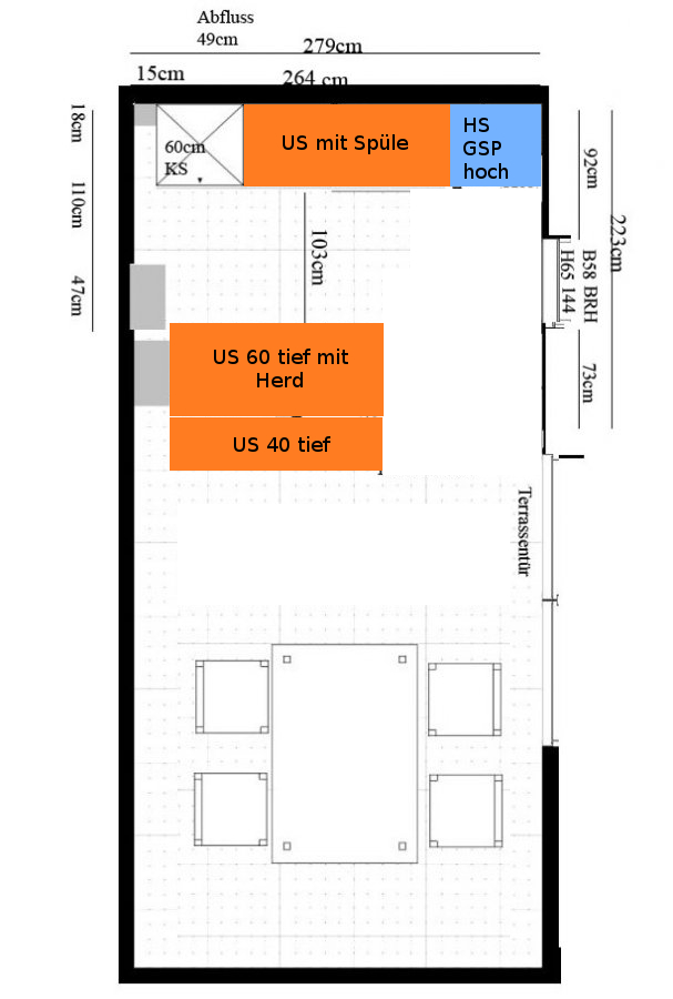 Ich habe auch einen Plan meiner alten Küche angehängt darauf kann man sehen warum.