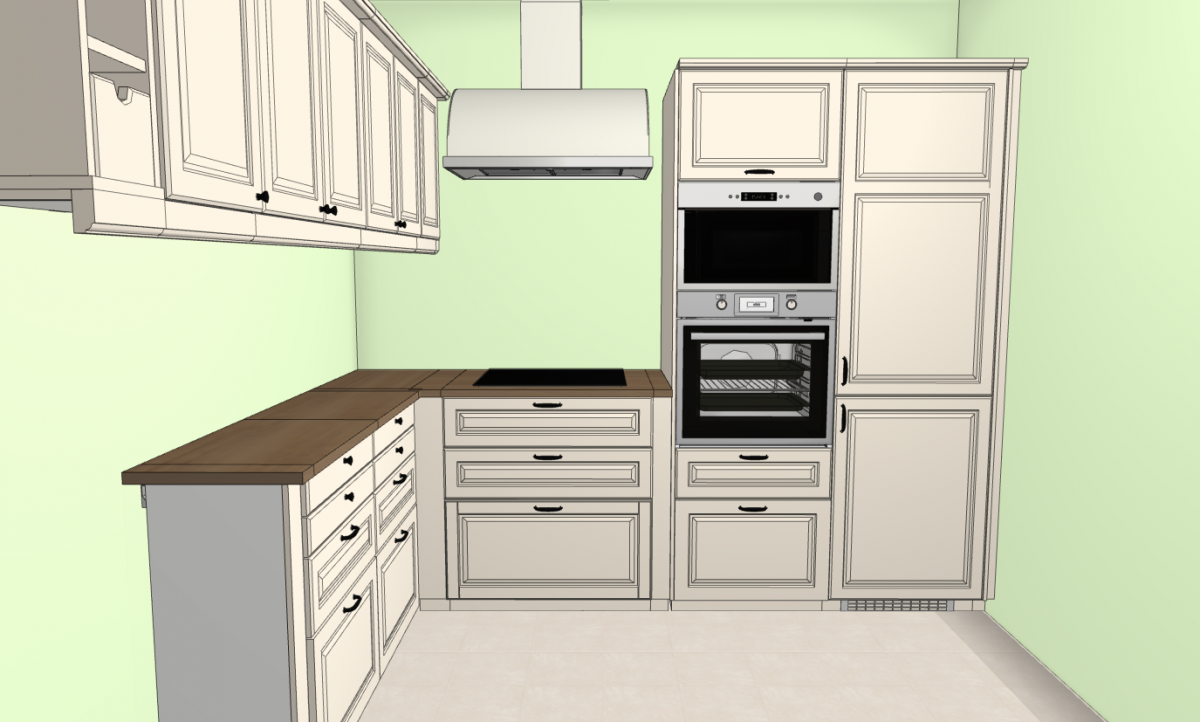 -Sämtliche Lebensmittelvorräte möchte ich weiterhin in der Küche aufbewahren. Hierfür wünsche ich mir einen Hochschrank mit Auszügen.