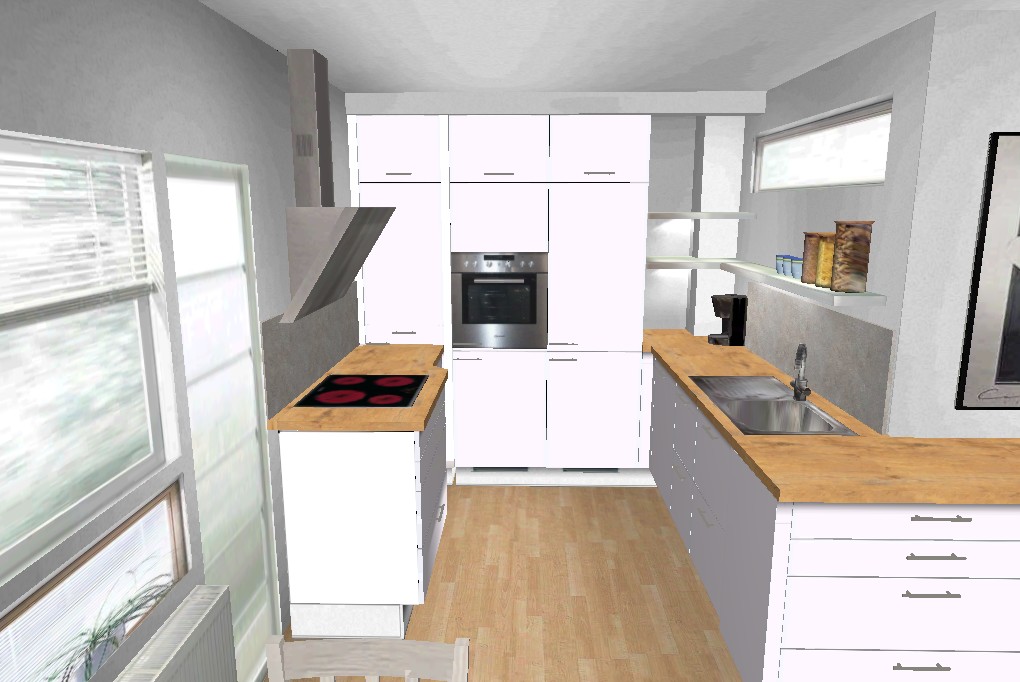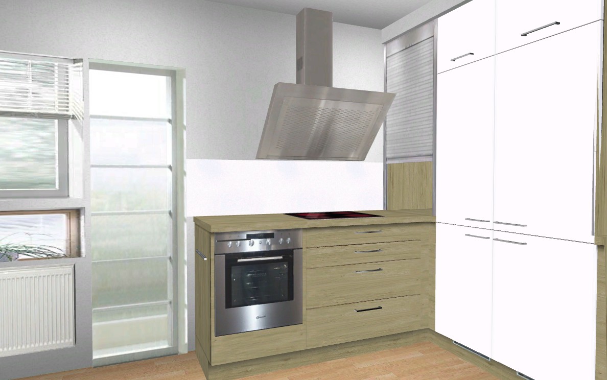 Und wenn du Bedenken wegen des Backofens hast (ich denke, das geht tretz der Ecke gut): mit einem Jalousieschrank oder Borden in der Nische kannst du den Backofen an den Zeilenanfang stellen, und das Kochfeld linksbündig in den Unterschrank einbauen.