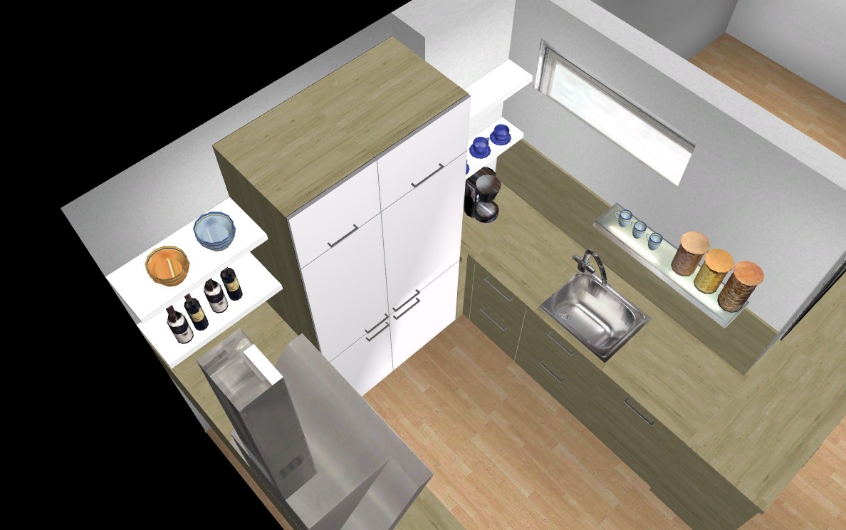 Für Geschirr usw Schränke in Mindertiefe (45/50cm) um die Ecke gezogen (sehr gute Idee, Evelin :2daumenhoch:), aber als Auszugschränke.