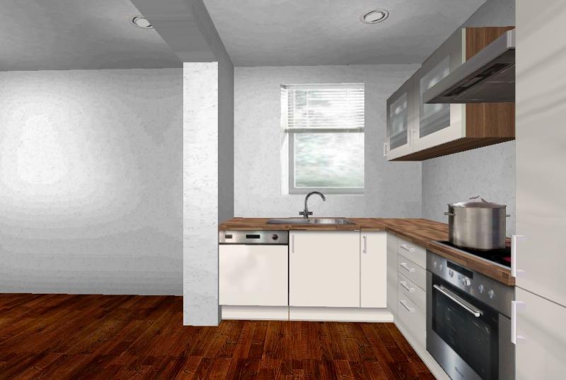 vor einiger Zeit hab ich hier gefragt wie man die Raumaufteilung einer kleinen Wohnung geschickt gestalten könnte. Manches lies sich umsetzen, anderes wieder nicht, das Ergebnis steht so langsam und man muss sich ernsthaft gedanken machen wie man die Küche einrichtet.