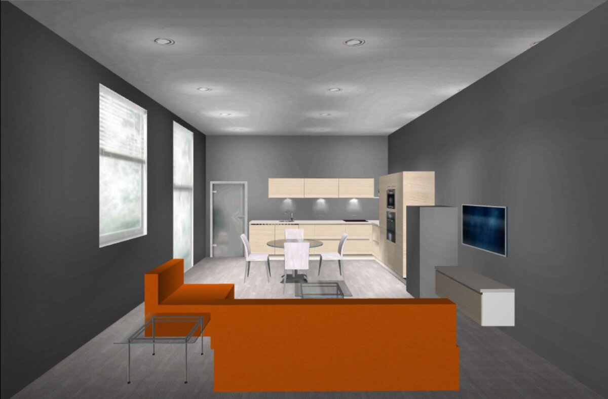 Claudia, ich sehe das Problem eher mit dem Wohnbereich, also Couch, TV und co. Alles andere kriegt man dann irgendwie hin, aber das wäre die Stelle, die ich zuerst entscheiden würde.