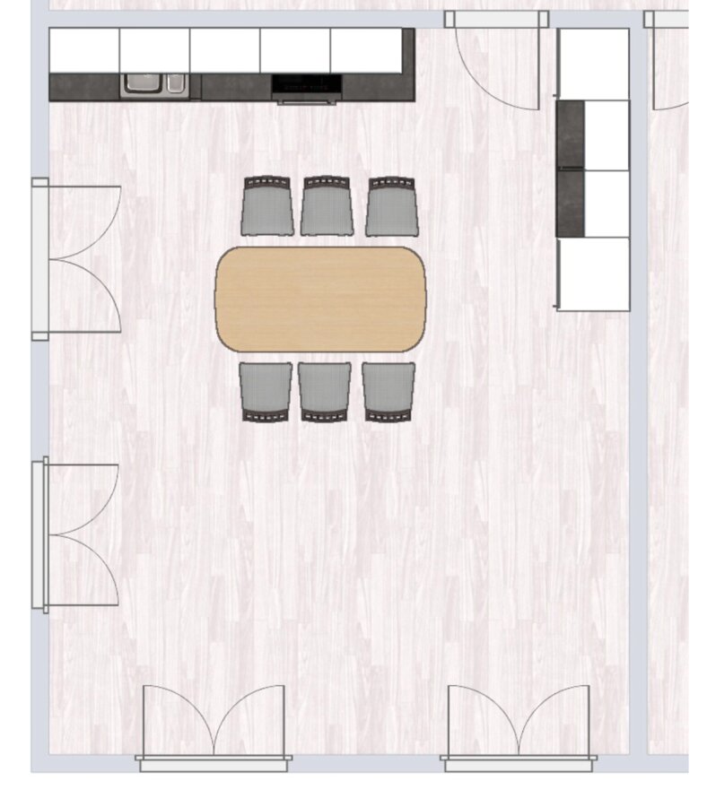 Es ist uns klar, dass bei jeder Lösung ein Bereich etwas bevorzugt wird. Habe ich einen großen Tisch, leidet die Küche etwas, ist die Küche größer, bleibt für den Wohnbereich weniger Platz.