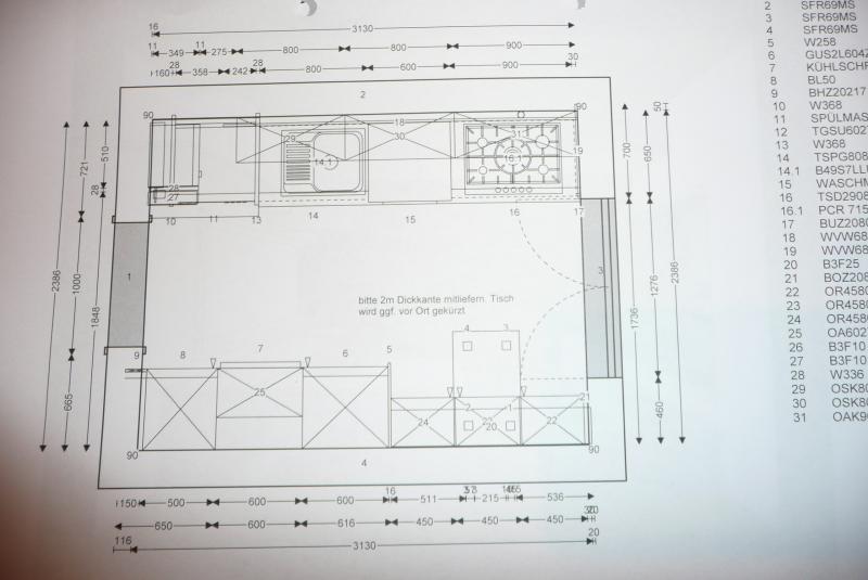Hallo Gisella, manchmal habe ich ein Brett vor dem Kopf, der Tisch muß doch gar nicht aus APL bestehen. Ich werde den weglassen und wenn die Küche steht und die neue Fenstertür drin ist, entscheiden, was ich nehme. Die Ausschnitte der APL werde ich trotzdem behalten, man weiß ja nie und schließlich muß ich die sowieso bezahlen.