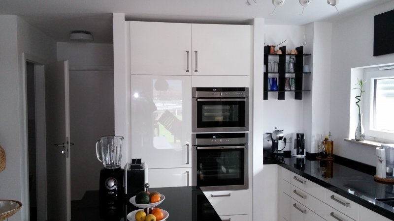 Also wir haben ein weiteres Angebot eingeholt. Alno mit lackierter Front Die Küchenmöbel sind gleich geblieben. Die Geräte haben sich geändert.