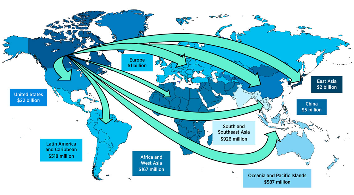 Holz ist ähnlich. Obwohl Europa nur US$1Bill vom Canadischem Holz bekommt, ist eben die Nachfrage woanders in der Welt viel größer, ergo der Preis.