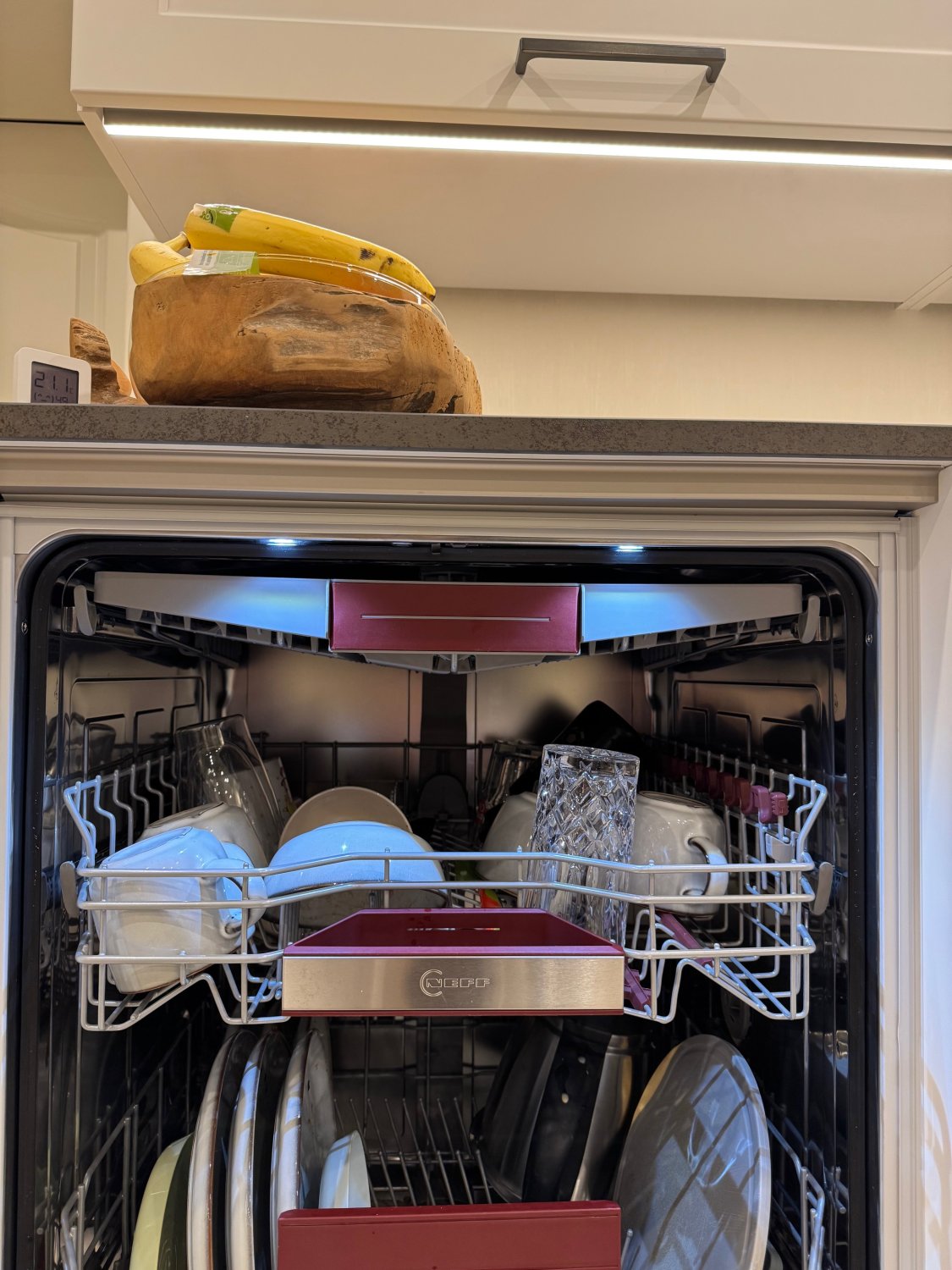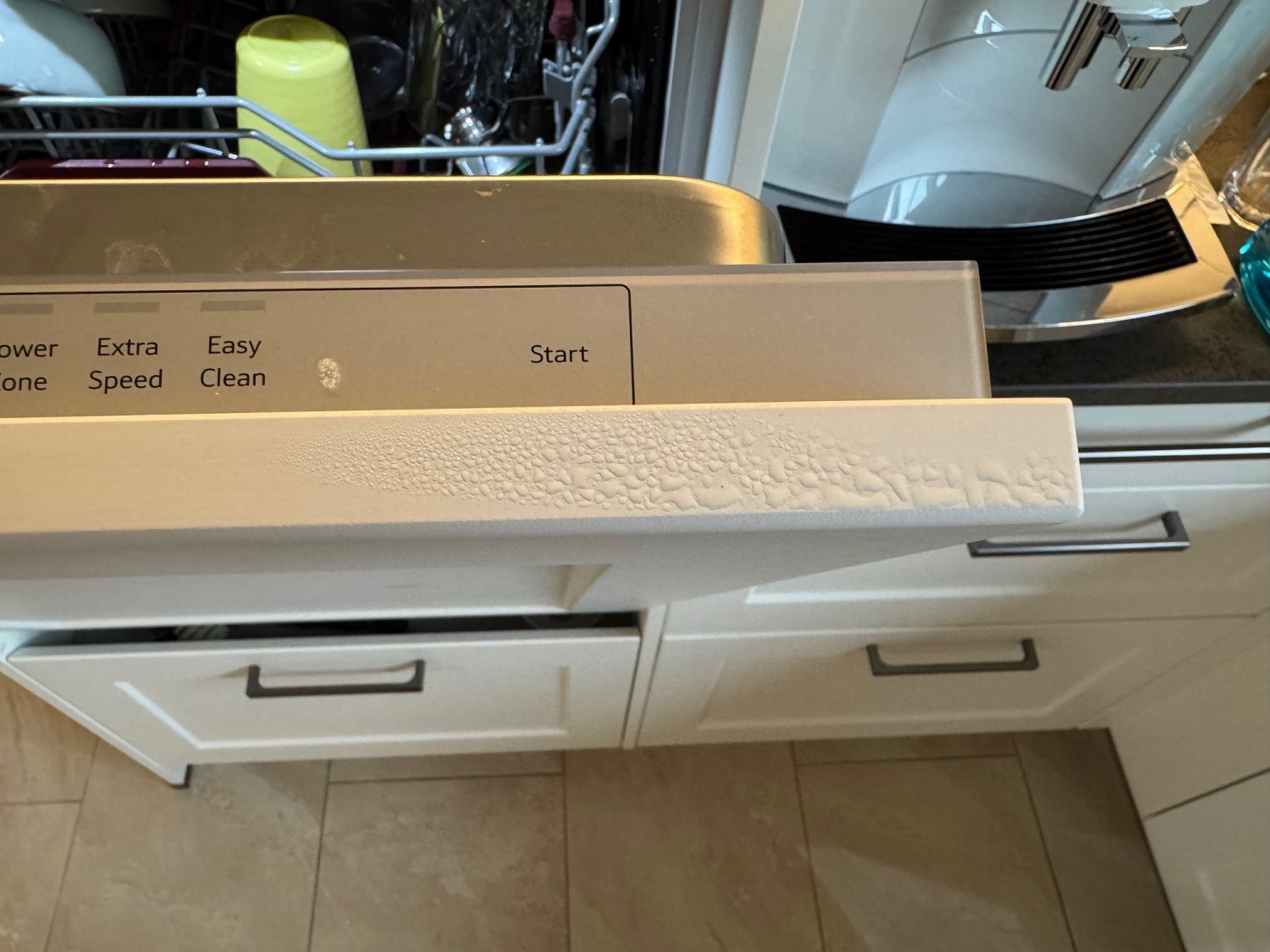 bei unserer Neff Spülmaschine die wir seit März im Einsatz haben bildet sich seit Beginn bei jedem Programm Kondenswasser auf der Verblendung.
