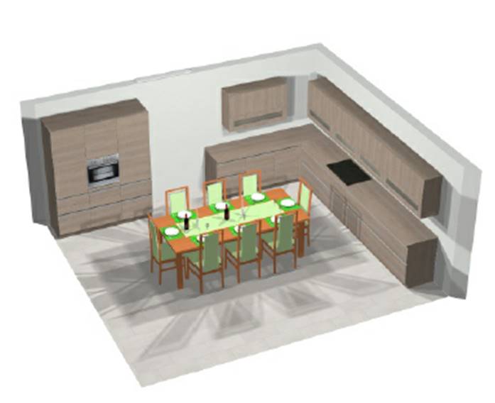 Ich hatte jetzt mal ein Alternativvorschlag erarbeitet. Hier raten mir aber all ab, da die Hochschränke, insbesondere der Kühlschrank zu weit weg von der Arbeitsfläche wäre.