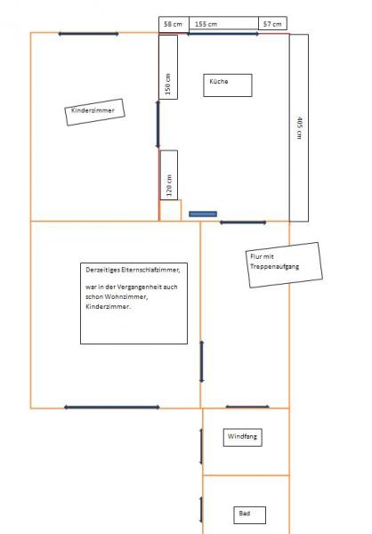 Auf der planlinken Seite habe ich dir die Tür mal ganz weggenommen. Braucht man den Zugang zur Küche vom Kinderzimmer?