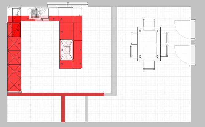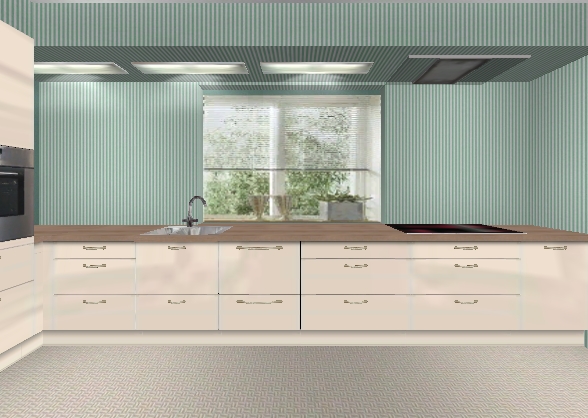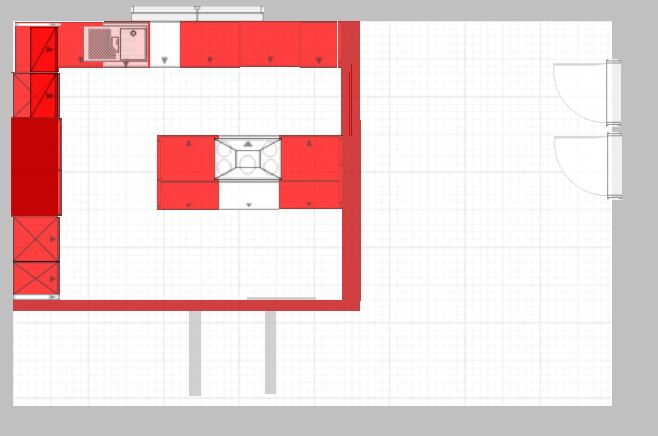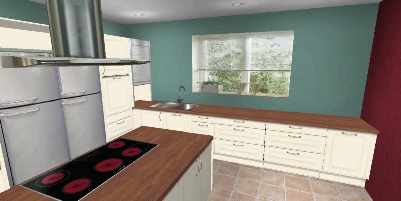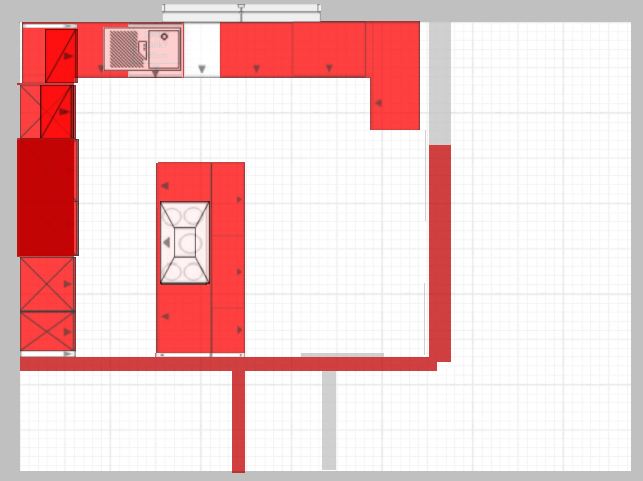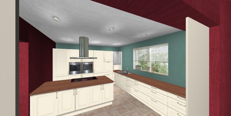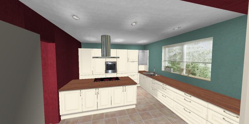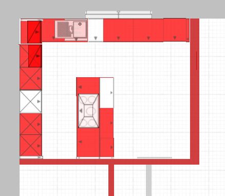Ich habe jetzt mal ohne allzuviel Rücksicht auf vorhandene Unterschränke (rausfliegen sollte wohl auf jeden Fall das Eckschrankmonster :kiss:) geplant (Ich habe keine Liste mit Beschreibung der vorh. Teile gefunden). Da kann man dann sicherlich die eine oder andere Schrankreihenfolge anpassen.