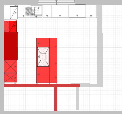 P.S. Problem an dieser Planung ist nur, das der Durchgang zum Flur so ungünstig steht. Da musst du die Schränke wirklich knirsch heranbauen. Vielleicht kann man ihn wenige Zentimeter schmaler machen. Die Rückseitigen Schränke weglassen ist keine Alternative, denn die APL-Tiefe brauchst du dort zum Arbeiten, alles andere wäre Murks.