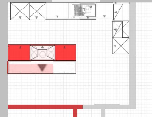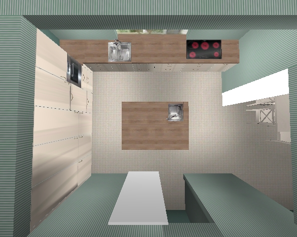 Eine Planungsidee habe ich noch. In der toten Ecke, habe ich rückseitig einen 60cm tiefen Unterschrank mit Auszügen vorgesehen.