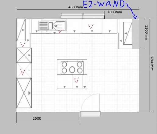 Ach so, du meinst den Plan aus Post 21. Den Eckschrank, den Du ans Zeilenende zum Esszimmerhin gestellt hast, den würde ich weglassen! Das sieht nicht aus. ;-) Ich hatte dir dort einen 50er Unterschrank mit Innenauszügen, angedacht. Der ist praktischer als ein Eckschrank.