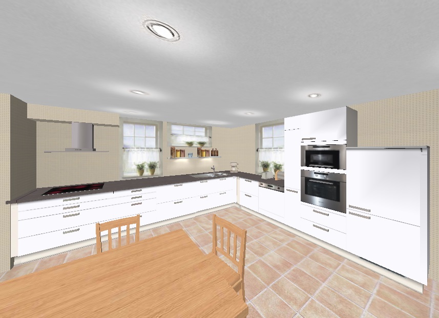 Aber die Ecklösung ist wirklich super. Ich habe jetzt endlich den Alno -planer bei mir zum Laufen gebracht. Hier mal eine die Variante von Evilin, aber mit Kühlschrank neben dem Backofen .