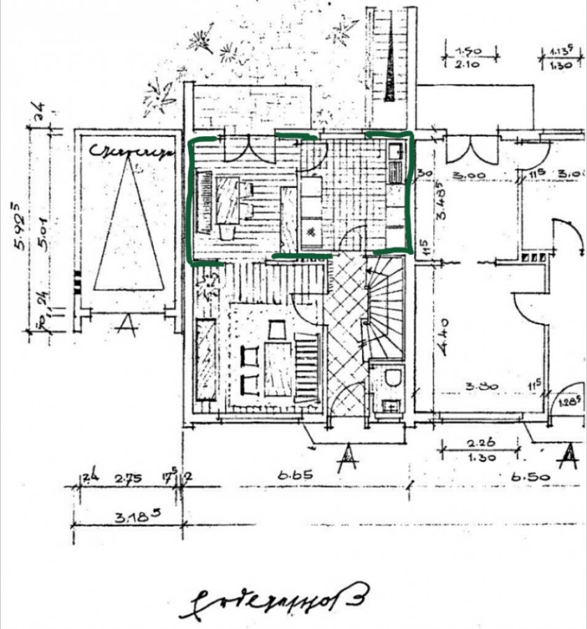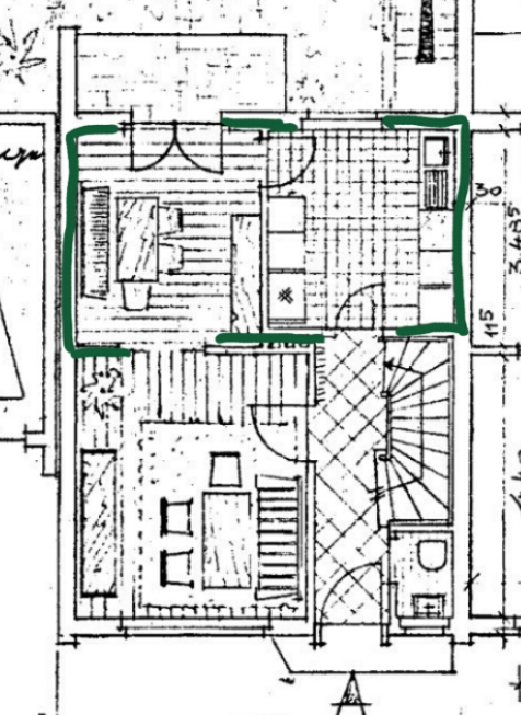 Das Haus wird zzt saniert und die derzeitige Küche wird vergrößert. Die Anschlüsse sollen vorerst an der planrechten Wand verbleiben, sind dort aber verlegbar. Die mittige Wand wird eingerissen.