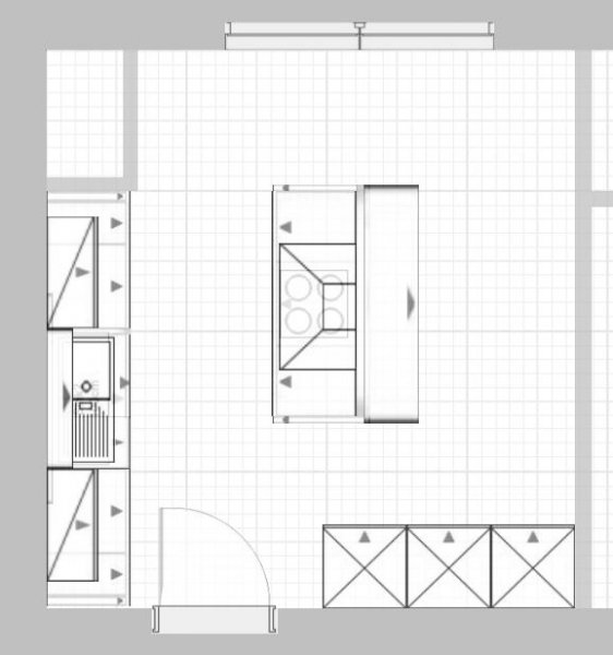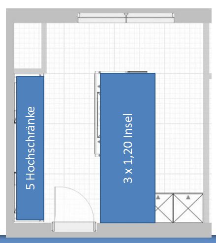 • Insel - die Durchgänge zwischen den Arbeitsblöcken und zwischen Seitenschränken & Insel sollte ca 90-100cm betragen. Zur Schiebetüre hin, kann es auch weniger sein.
