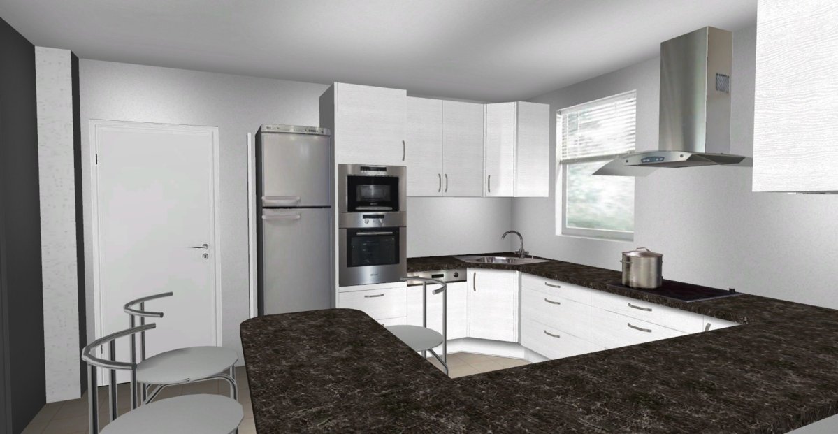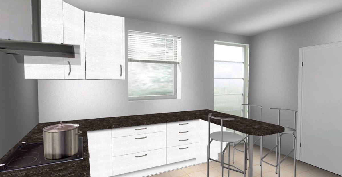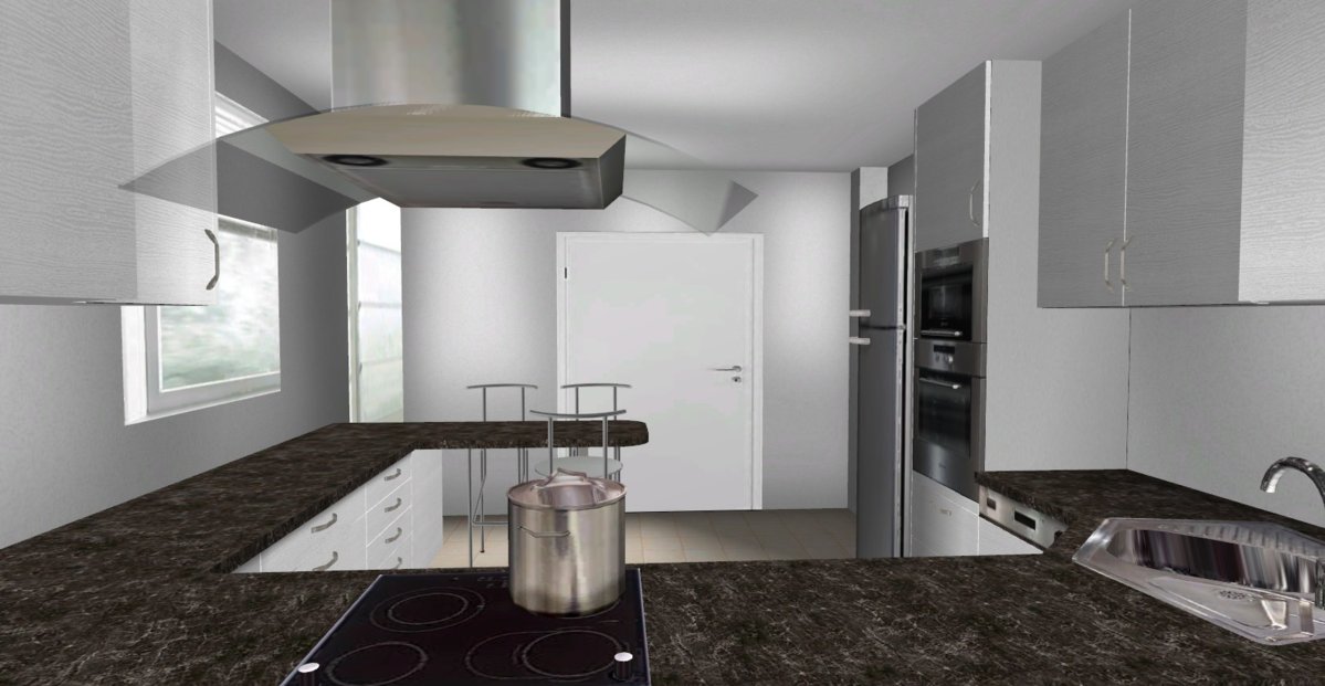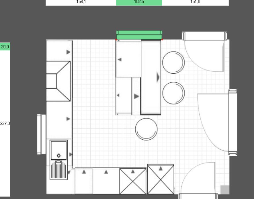 Sehr interessante Variante, muss ich mal meiner besseren Hälfte vorlegen. Allerdings erscheint mir der Durchgang zwischen Kühlschrank und Insel etwas eng (wenn da immer der Stuhl steht), und da muss man sehr oft durch wegen Spüle, Müll, Geschirr...