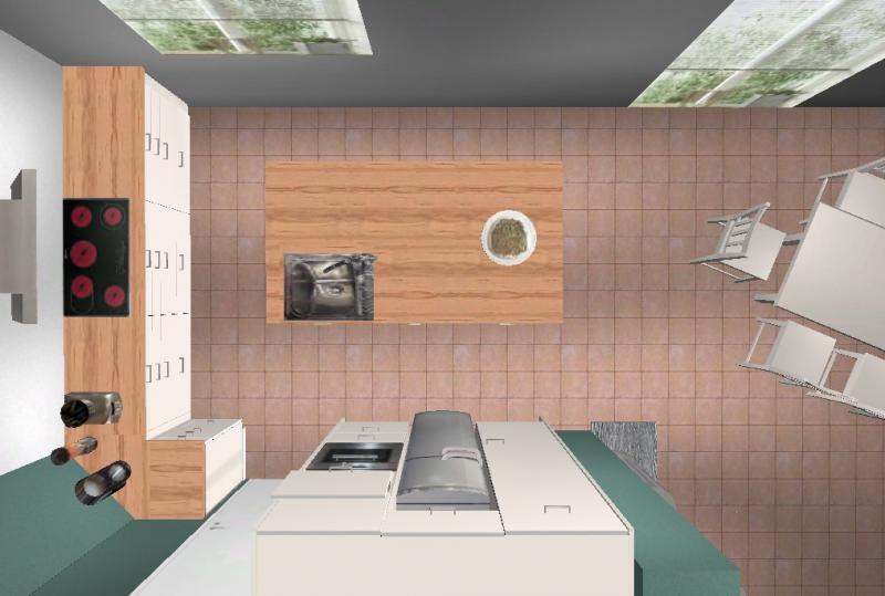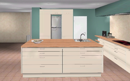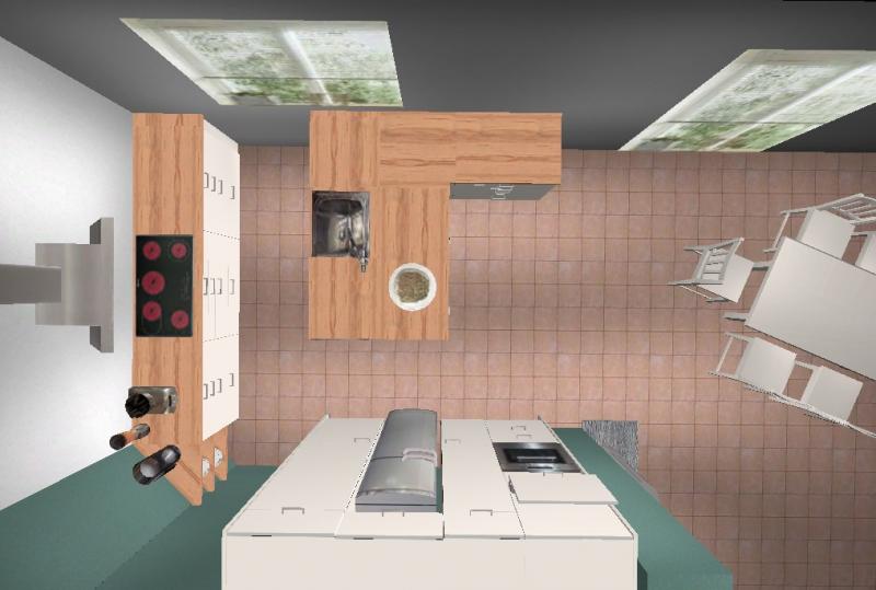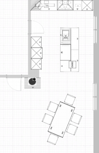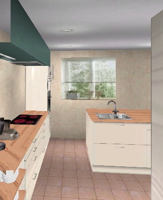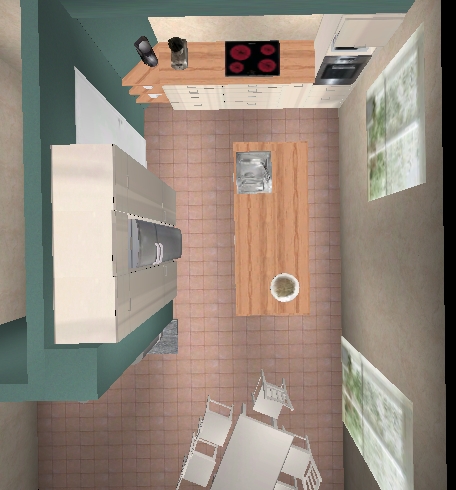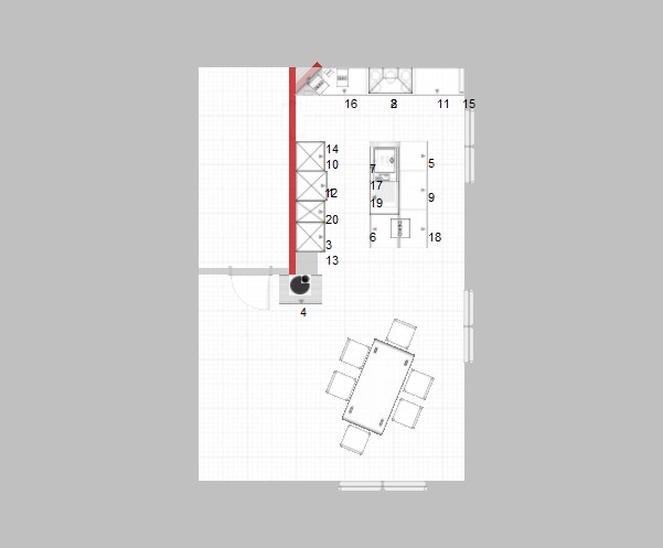 Für die offene Ecke rechts neben der Tür kenne ich noch keine Lösung. Was macht man mit solchen Ecken? Einfach nur die Arbeitsplatte verlängern und darunter Luft lassen?