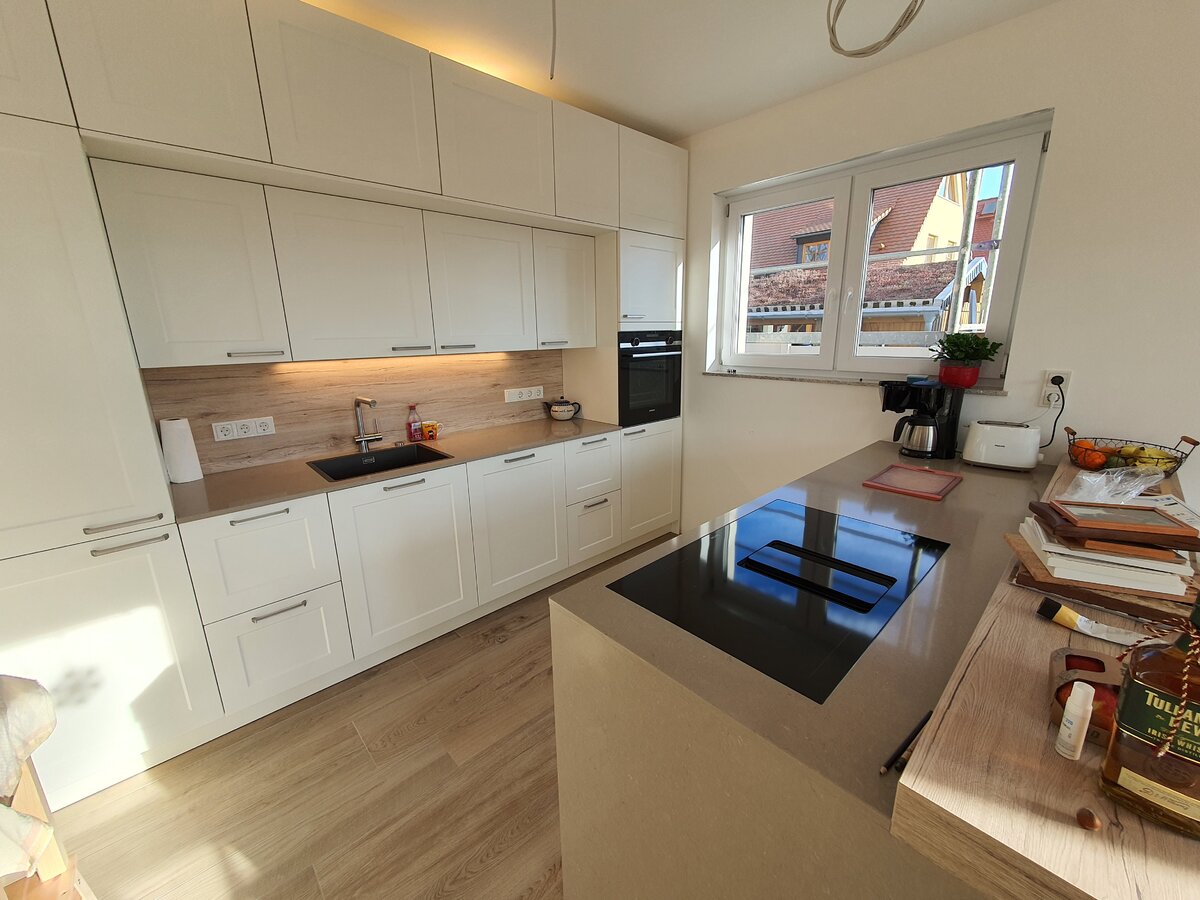 Das Licht über der Küche ist nur ein Testaufbau. Da kommt später ein Hue Led Band hin und dahinter 3 E27 Hue Leuchtmittel. Damit sind dann verschieden Farbige Lichtstimmungen möglich.