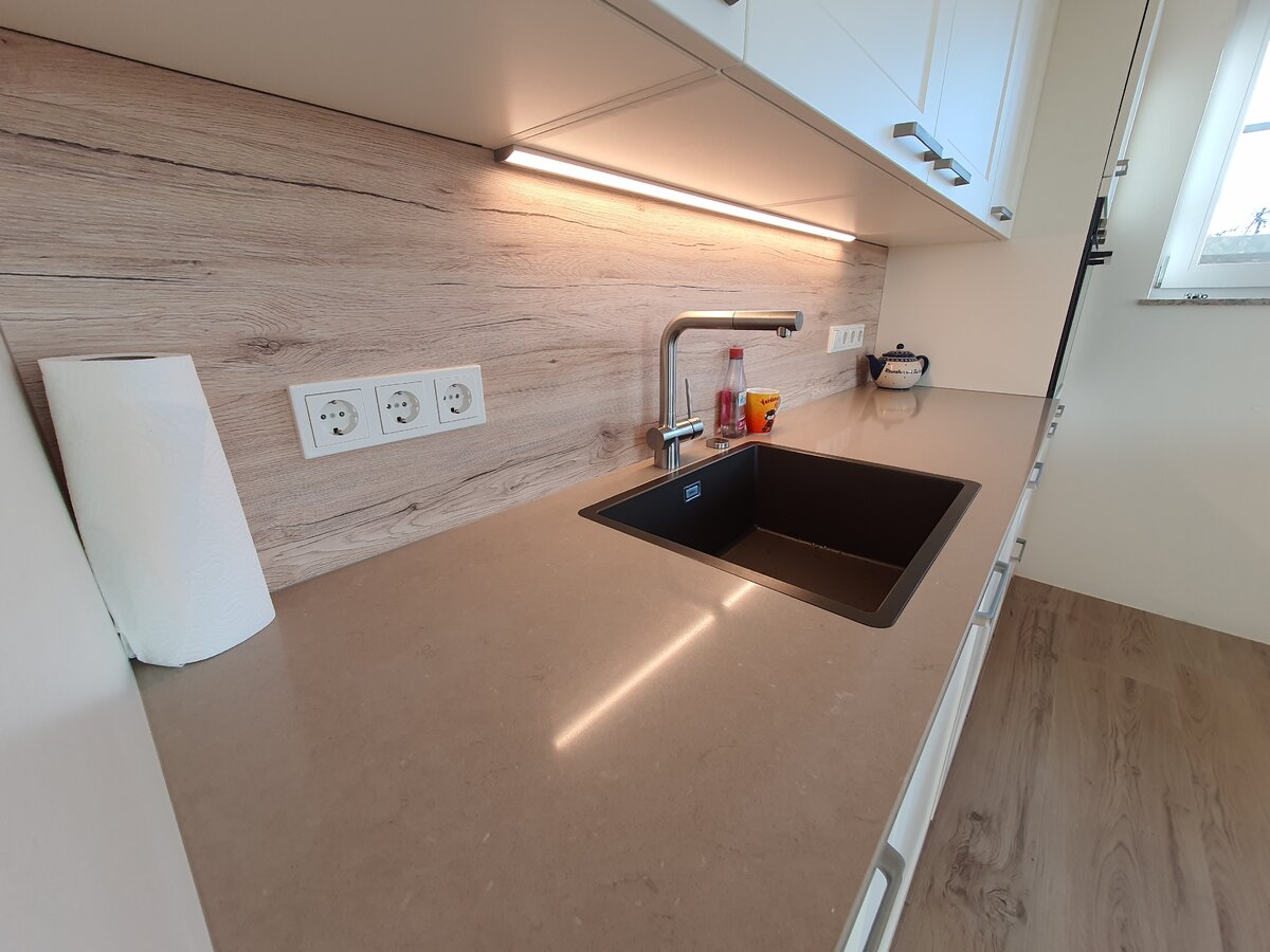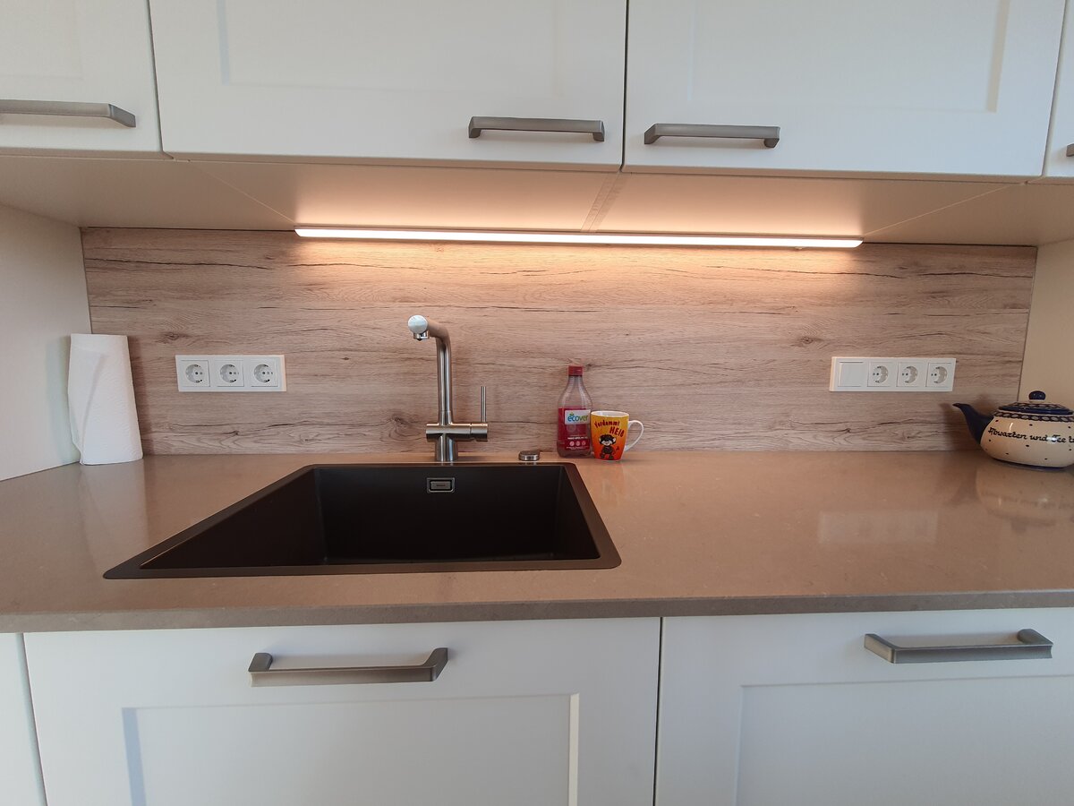 Arbeitsplatte habe ich über eine geschaltene Steckdose angeschlossen.