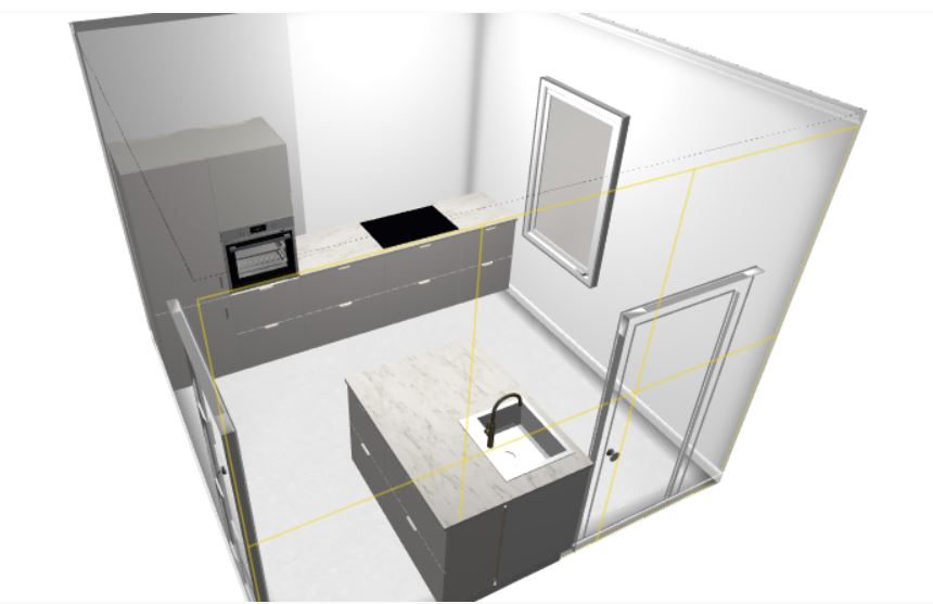Die Anschlüsse sind leider fix. Da wir an der einen Seite nicht nur eine Spüle stellen möchten, planen wir die angedachte Insellösung. Gerade bei der Raumplanung sind wir deshalb für alle Tipps offen. Über konkrete Geräte, Fronten und Arbeitsplatten machen wir uns noch gar keine Gedanken.