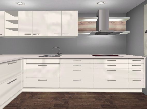 Wenn ihr im RMH Abluft wollt, dann würde ich das Kochfeld mehr Richtung Fenster bringen. Das vereinfacht die Abluftführung. Und hat gleichzeitig den Vorteil, dass die Spüle mehr Richtung Halbinsel .. Vorbereitungsinsel kommt. In der Halbinsel jetzt ein 60er MUPL incl. Papiermüll usw. Im unteren Auszug könnten Körbe mit Zwiebeln, Kartoffeln etc. untergebracht werden. Ebenfalls in der Halbinsel die GSP. Schläuche dazu werden im Sockelbereich zum Spülenschrank geführt.