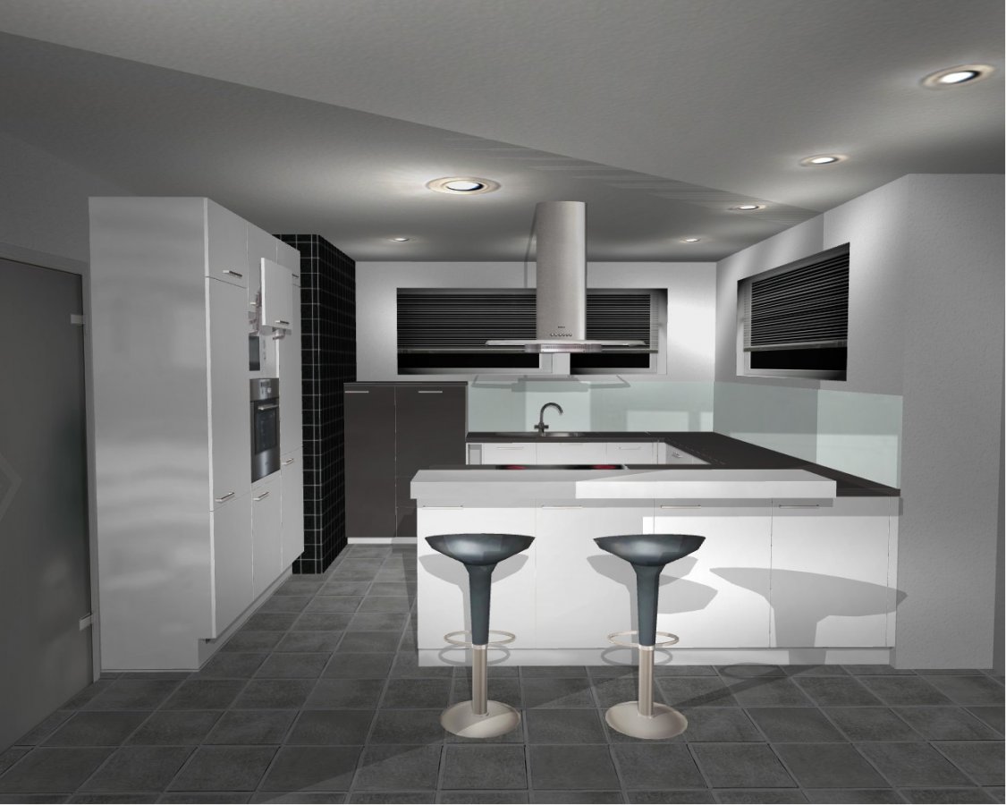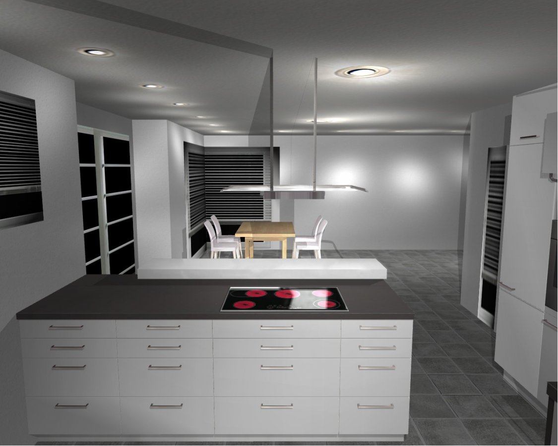 Unmittelbar geht es uns vor allem darum die Einteilung und Größe der Küche festzulegen. Sprich wo kommt ein HS, US … hin, wo brauchen wir Wasser, Strom etc. und wie bereits erwähnt wollen wir die Fensterabmessungen und Positionen sowie die Innenwände und Türen festzurren. Nicht das uns nachher ein-zwei Zentimetern zur „Traumküche“ fehlen. Die Fronten (eventuell weiß Hochglanz mit Akzent durch andere Farbe an halbhohen HS), AP (eventuell Laminat Basalt oder Schiefer), Spüle (eventuell FRANKE FX FXG 611-100), Gerätehersteller und Typ etc. werden wir zu einem späteren Zeitpunkt festlegen.