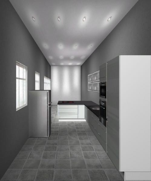 Ich Dämlack hab die Alno Pläne vergessen. Anbei nun noch die Bilder und Pläne. Ich hatte außerdem vergessen zu erwähnen, das der Raum nahezu 15 Meter lang ist, allerdings nur 2,70 Meter breit. Die Küche ist dabei Durchgangsbereich in den Essbereich bzw. zum Garten.