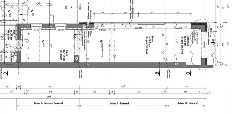 Ja, der Raum des Anbaus ist wirklich spannend. Der erste Teil (Kochbereich) hatte vormals etwa 2.80, nach entfernen der Zwischendecke waren wir von der Höhe nahezu überrascht. Der nachfolgende Essbereich war (bzw. ist aktuell noch) zweigeschossig. Früher hat man allerdings nicht so viel Wert auf Raumhöhe gelegt, mit 2,05 Meter auf jeder Etage kann heute allerdings niemad leben (bzw. Arbeiten, waren mal Werkstätten). Dazu kommt dann noch ein wenig Dachboden und so entsteht nach der Sanierung dieser Raum. Änderungen in den Höhen dürfen wir nicht vornehmen, auch nicht am Dach, da Denkmalschutz und da die ehemalige Zweigeschossigkeit weiter abgebildet bleiben muss. Irgendwie ein interessantes Format von ezwa 2.70-2.80 Meter Breite, 15 Meter Länge und bis zu 5 Meter Höhe! Am liebsten würden wir das Format wie einen Bauklotz kippen... ;-);-)