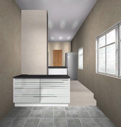 In der Breite sehe ich nicht so das Problem - es fiele ja gar nicht auf, wenn er ein paar Zentimeter vor die Küchentüröffnung ragt, da bleibt halt die Schiebetür eben immer dieses Stückchen zugeschoben. ;-)