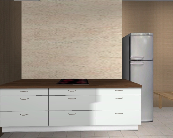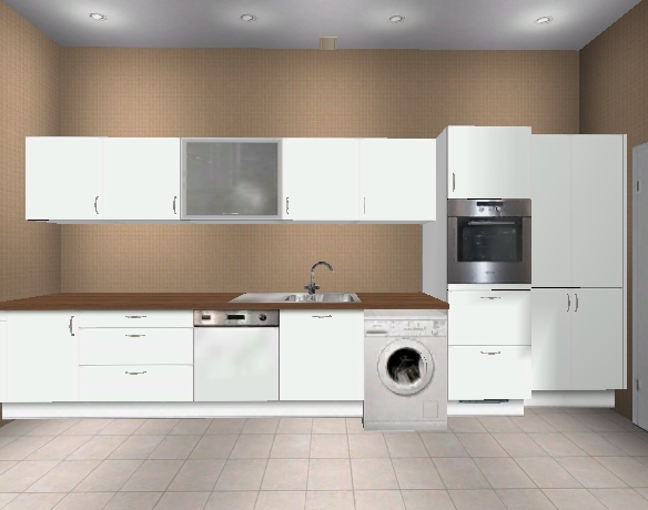 Die sehr laienhaft zusammengebastelte Planung würde mit der Ramsjö-Front und ohne jegliche Geräte, Kranzleisten und sonstigen Extras 3750,- kosten; Spüle, Backofen und Kochfeld kämen noch dazu.