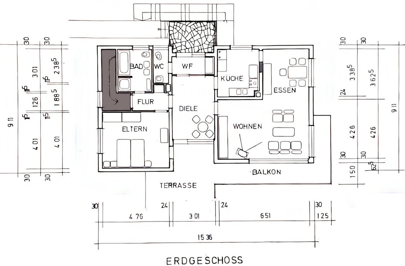 Die Raumsituation stellt uns vollends zufrieden und möchten wir nicht ändern, auch wenn der Küche hierbei eher weniger Raum zur Verfügung gestellt wird und man immer durch die Diele auf die Terrasse laufen muss. Teilweise ist das auch durch die Ausrichtung des Hauses und den Sonneneinfall begründet.