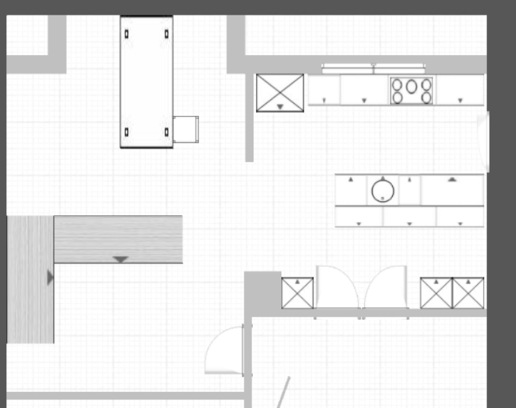 dein Vorschlag funktioniert doch auch wenn man die Küchentür nicht verändern möchte. Dann könnte man eine freistehende Arbeitsinsel planen etwas kürzer und etwas weiter planlinks. Entsprechend den Dimensionen der ursprünglichen Kochinsel, die ich übrigens auch als zu klein empfinde um angenehm kochen zu können.