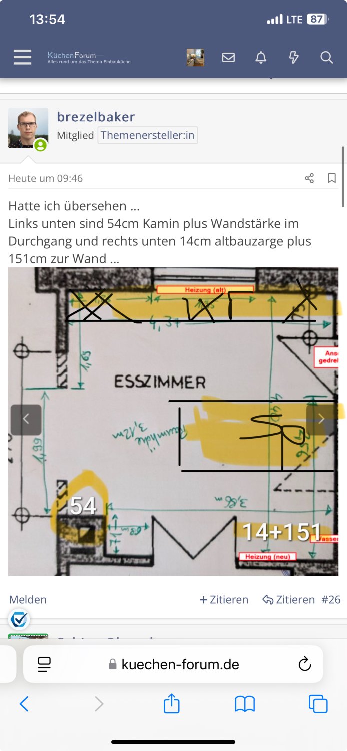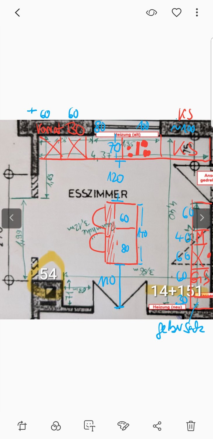 Links unten sind 54cm Kamin plus Wandstärke im Durchgang und rechts unten 14cm altbauzarge plus 151cm zur Wand ...