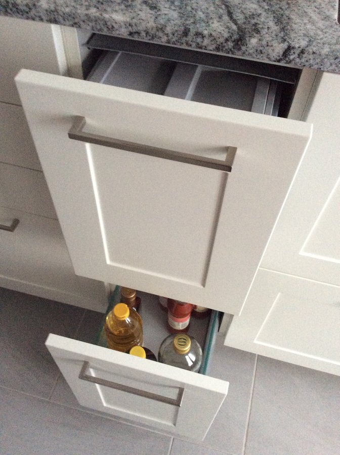 Mach ich den da hin wo im Moment der 30cm Apotheker für Öl ist? Da kann ich dann direkt den Bio Müll rein schieben, weil ich da meine Haupt Arbeitsfläche sehe. In den MUPL soll aber auch Restmüll. Ist das dann zu weit von der Spülmaschine beim einräumen zum Müll und man steht ja auch davor wenn man am Waschbecken steht?