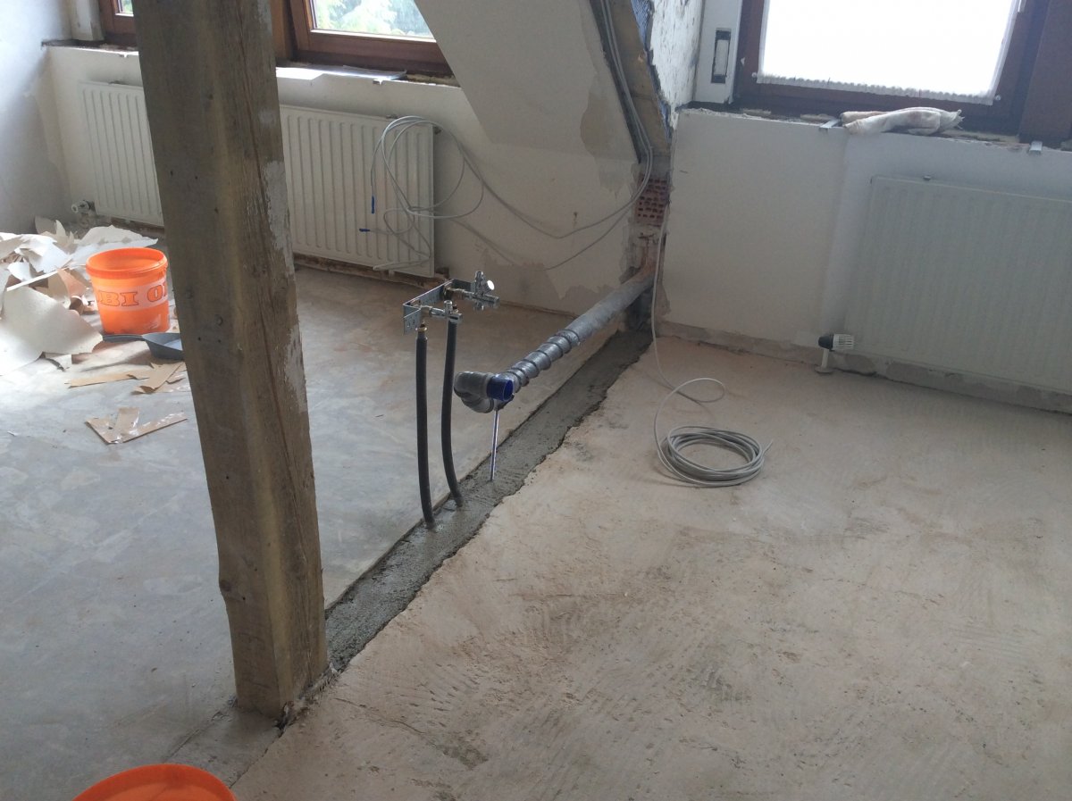 @Evelin Ein zweites Fallrohr würde bedeuten im Vorgarten Anschluss an das bestehende Fallrohr zu bekommen, welches bei den Nachbarn im Vorgarten verläuft. Bedeutet unseren Vorgarten und den gepflasterten Vorgarten der Nachbarn aufgraben. Nein, keine Option leider. Genau, das Rohr würde dort, da die Wand dort dicker ist, um den Anbau zu tragen, ein Stück in der Wand verlaufen und dann im HWR (dort wo das "Büro" im EG, ist der HWR im Keller). Dort kann es dann einfach frei zum Fallrohr geführt werden aufputz.