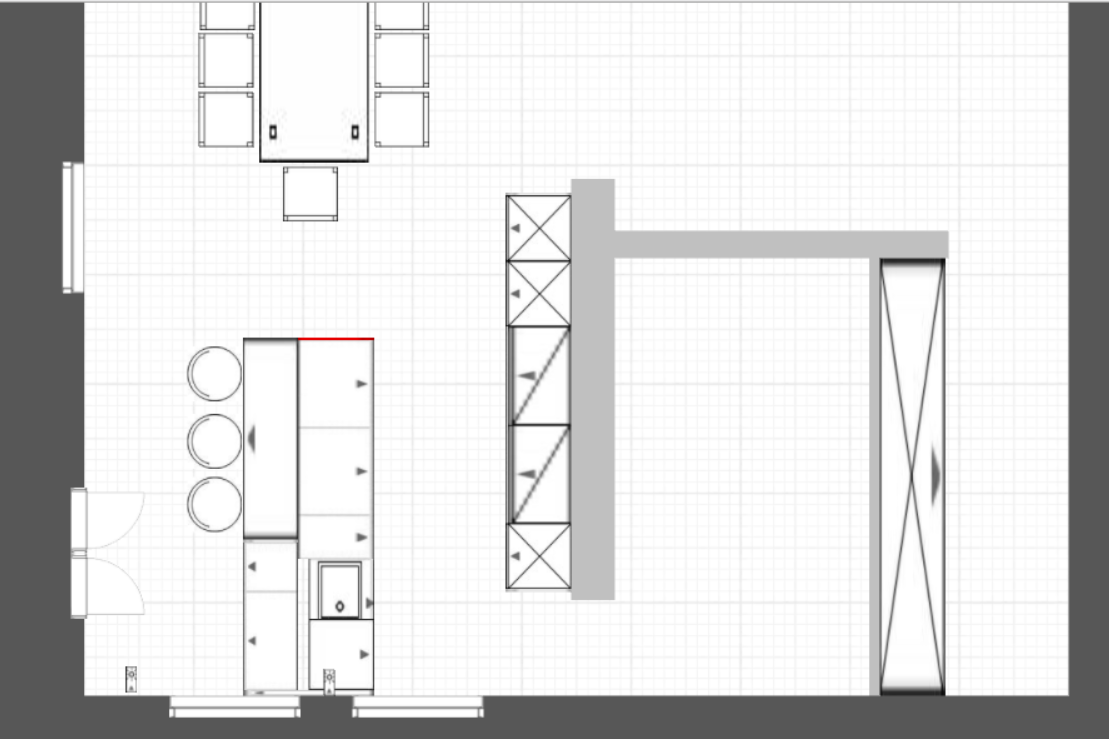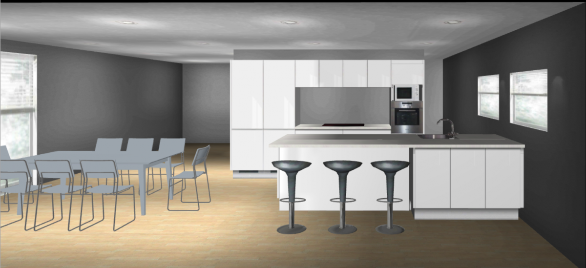 Für diese Variante spricht die Spülinsel-Möglichkeit. Der Laufweg spricht eher dagegen. Spannend verschiedene Perspektiven in dem Raum einzunehmen, aber ich denke wir bleiben bei der Variante A und einre reinen Arbeitsinsel. Dies scheint ja auch nicht das schlechteste.