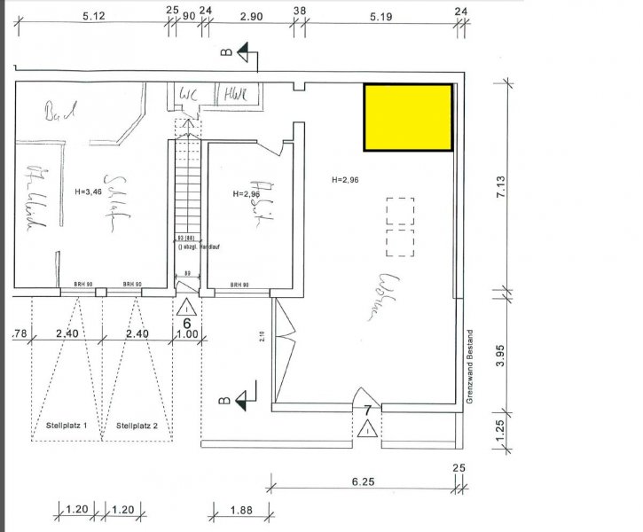 2-Zeiler - planoben ... alles 10 cm von der Wand weg, damit man evtl. das Wasser Aufputz ein paar cm nach planlinks legen kann.