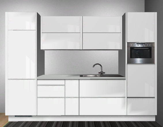 - 100er Spülenschrank, Spülbecken links, Abtropfe rechts. Im oberen Auszug haben dann Putzmittel, großer Behälter Gelber Sack, Altpapier Platz. Der untere Auszug Stauraum, z. B. höhere Vorratspackungen etc.
