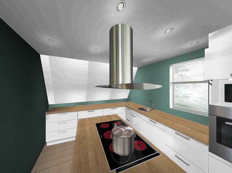 mein Problem ist, dass ich nicht wirklich weiß wohin mit dem Herd. Wegen der Schrägen hab ich das Problem mit der Abzugshaube, ich will die nicht weglassen.