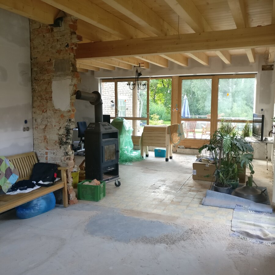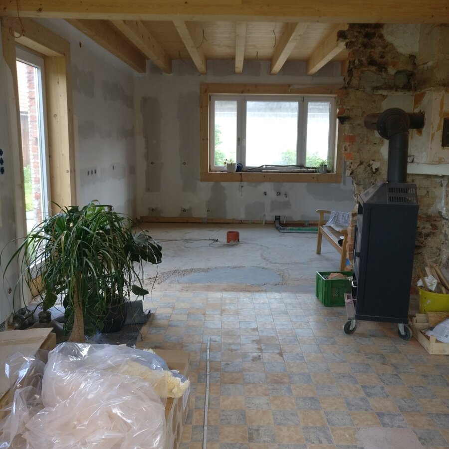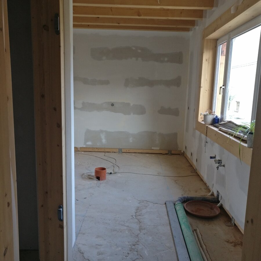 ich lese hier schon länger mit und haben auch schon viele Ideen die hier vorgeschlagen werden in unserer alten Küche umgesetzt und jetzt in die neue Küche integriert, da wir aber vor einigen Herausforderungen stehen, wende ich mich hier an das kompetente Forum;-) Wir haben ein altes Bauernhaus gekauft, dieses wurde die letzten 4 Jahre von unserem Vorbesitzer weitestgehend entkernt und neu aufgebaut. Wir dürfen dieses Werk jetzt vollenden. Im EG ist eine große Wohn und Essküche geplant, der Fußboden wird von uns noch komplett neu aufgebaut, daher sind wir noch relativ frei, was die Planung angeht. Allerdings ist das Fenster in der Küche fix und auch die Wasseranschlüsse würden wir nicht mehr versetzen wollen. Der Vorbesitzer hat in der Küche ein paar Dinge geplant, die uns in Hinblick auf Arbeitswege und Abstände nicht ganz schlüssig erscheinen, daher überlegen wir schon sehr lange wie wir es umsetzen können. Zusätzlich haben wir mit dem Haus schon das Induktionskochfeld mit Abluft erworben, welches wir gerne einbauen wollen. Hier ein paar Besonderheiten: