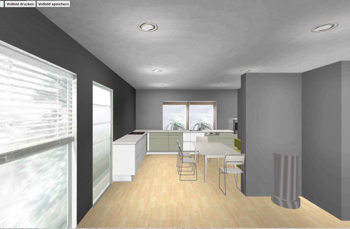 Links neben dem Fenster hat er Backofen und Kühlgerät geplant, daher haben wir das so in den ersten Planungen mit übernommen.